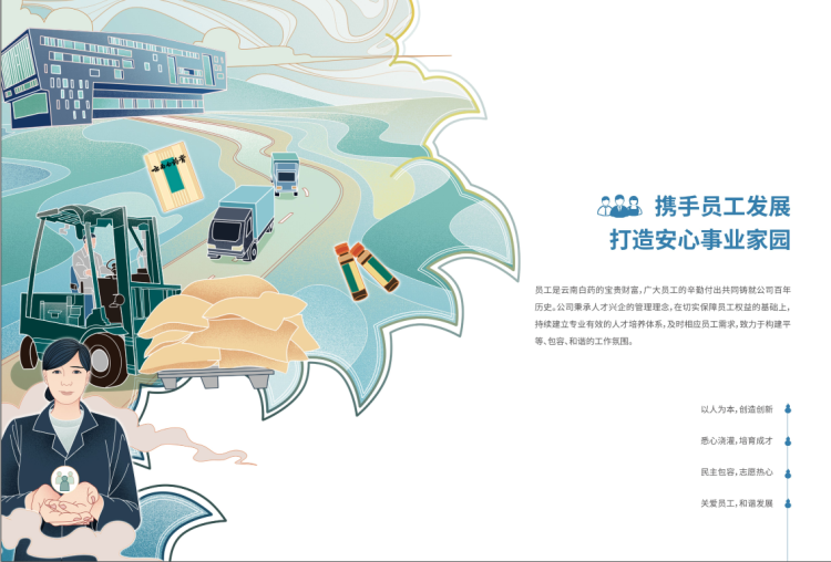 1.概述員工是云南白藥集團股份有限公司(以下簡稱“云南白藥”或“公司”)的寶貴財富,員工的辛勤付出共同鑄就公司百年歷史。公司秉承人才興企的管理理念,在切實保障員工權益的基礎上,持續建立專業有效的人才培養體系,及時響應員工需求,致力于構建平等、包容、和諧的工作氛圍。云南白藥重視和培養員工的多元化,不得因種族、膚色、性別、宗教、國籍、殘疾...