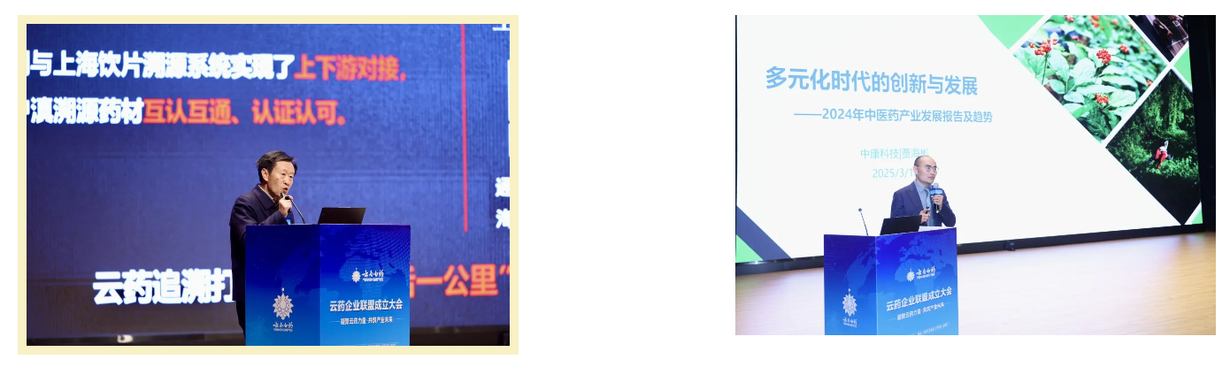 專題報告環節,多名專家圍繞云南中藥材產業高質量發展出謀劃策。云南省中藥產業協會會長蘇豹作《云藥追溯助力中藥材產業高質量發展》專題報告;中康控股中康云瓴科技公司總經理、中康科技中藥產業大數據中心首席分析師賈海彬作《全國中藥產業現狀分析及發展預測》專題報告。面對中藥材產業標準化程度不足、質量追溯體系薄弱等共性難題,以“產業規劃+數字基建”雙輪驅動,開辟高質量發展新路徑。二者的有機融合,不僅助力云南建成覆蓋種植、加工、流通的標準化體系,更以可信溯源數據重塑“云藥”品牌價值。