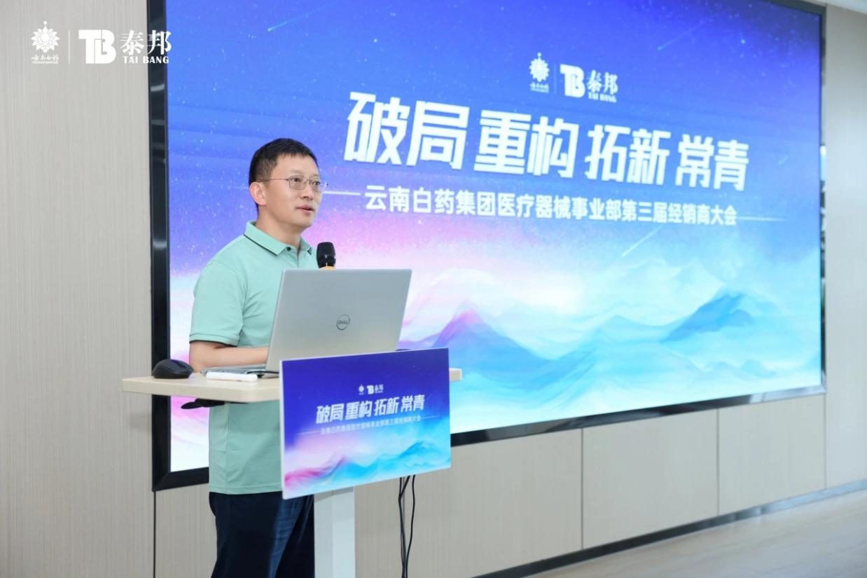 會議上,合肥公司總經(jīng)理朱家龍就本次會議主題—“破局 重構(gòu) 拓新 常青”作了主旨演講,就習(xí)總書記在第二十屆三中全會《決定》中所強(qiáng)調(diào)的“健全支持創(chuàng)新藥和醫(yī)療器械發(fā)展機(jī)制、完善中醫(yī)藥傳承創(chuàng)新發(fā)展機(jī)制、強(qiáng)化基層醫(yī)療衛(wèi)生服務(wù)”等方針政策,向與會來賓作了分享,并從當(dāng)前醫(yī)藥市場環(huán)境、連鎖業(yè)務(wù)態(tài)勢、優(yōu)質(zhì)產(chǎn)品及慢病疼痛機(jī)遇等方面進(jìn)行了系統(tǒng)性分析,針對渠道端的多樣化發(fā)展,合肥公司及經(jīng)銷商要立足現(xiàn)有基礎(chǔ),打開傳統(tǒng)思維閉環(huán),創(chuàng)新銷售模式,思考長期可持續(xù)發(fā)展的業(yè)務(wù),找準(zhǔn)市場痛點(diǎn)、產(chǎn)品賣點(diǎn),做優(yōu)產(chǎn)品與服務(wù),筑牢業(yè)務(wù)長期發(fā)展的基石。